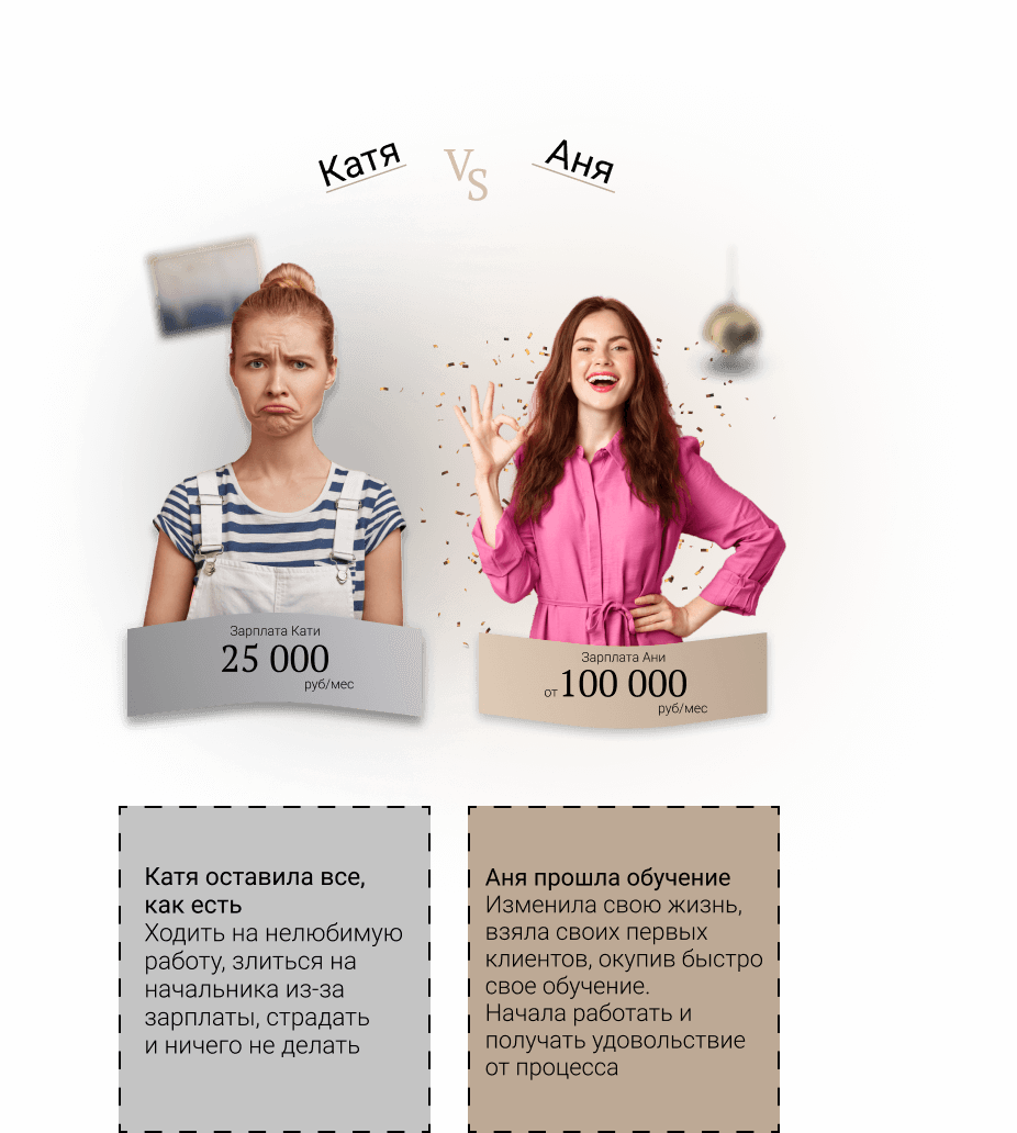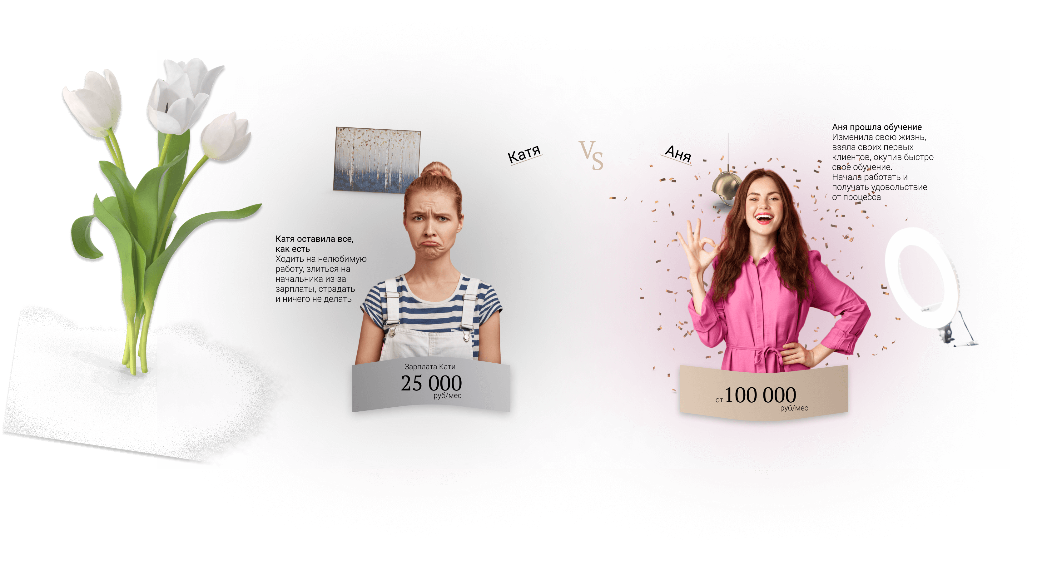 После прохождения курса, вы выходите с четким планом и готовым портфолио. Вас будет фотографировать профессиональный фотограф во время обучения. У вас будет поддержка и возможность стажировки в нашей студии. Пока вы не закроете свои пробелы.